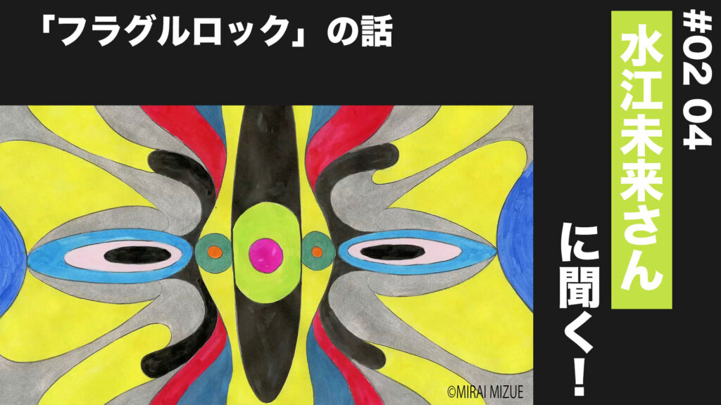 2024年4月2日2024年5月1日 TALK 【水江未来の旅】#02 04 「フラグルロック」の話 ゲスト:水江未来 アニメーション作家 1981年福岡県生まれ。「細胞」や「幾何学図形」をモチーフに、 Continue Reading