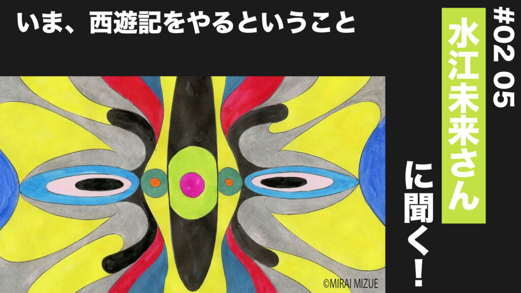 2024年4月2日2024年5月1日 TALK 【水江未来の旅】#02 05 いま、西遊記をやるということ ゲスト:水江未来 アニメーション作家 1981年福岡県生まれ。「細胞」や「幾何学図形」をモチーフに、 Continue Reading